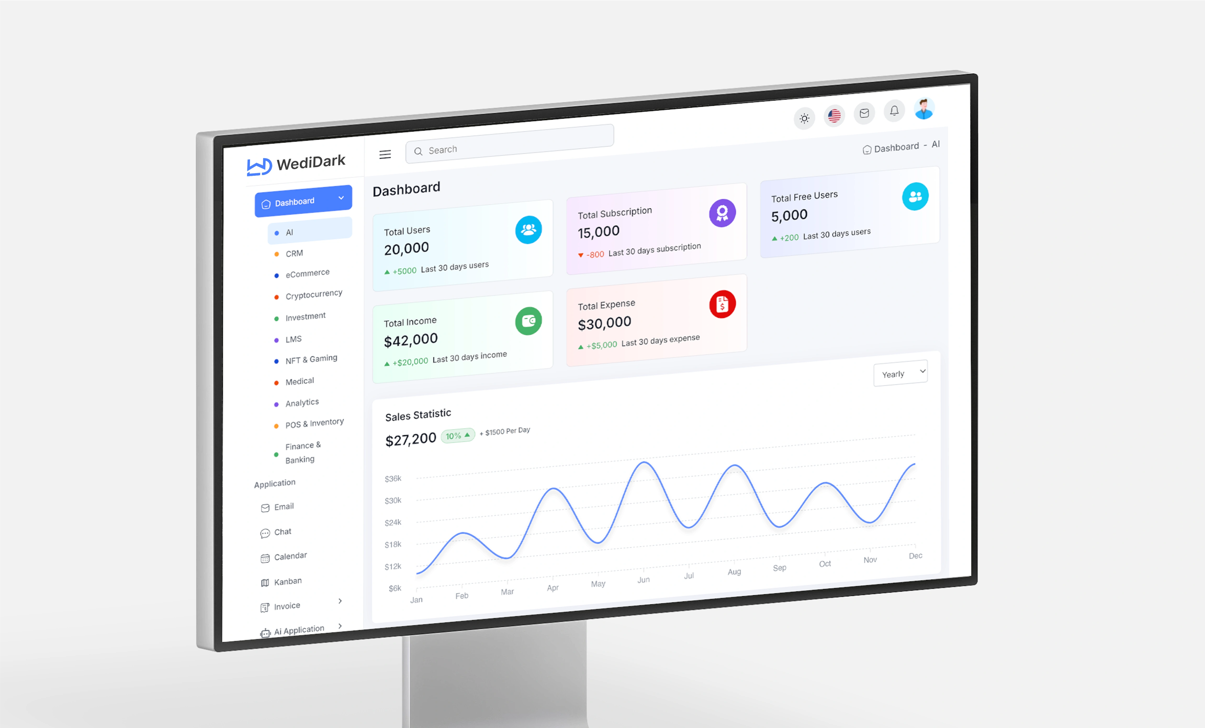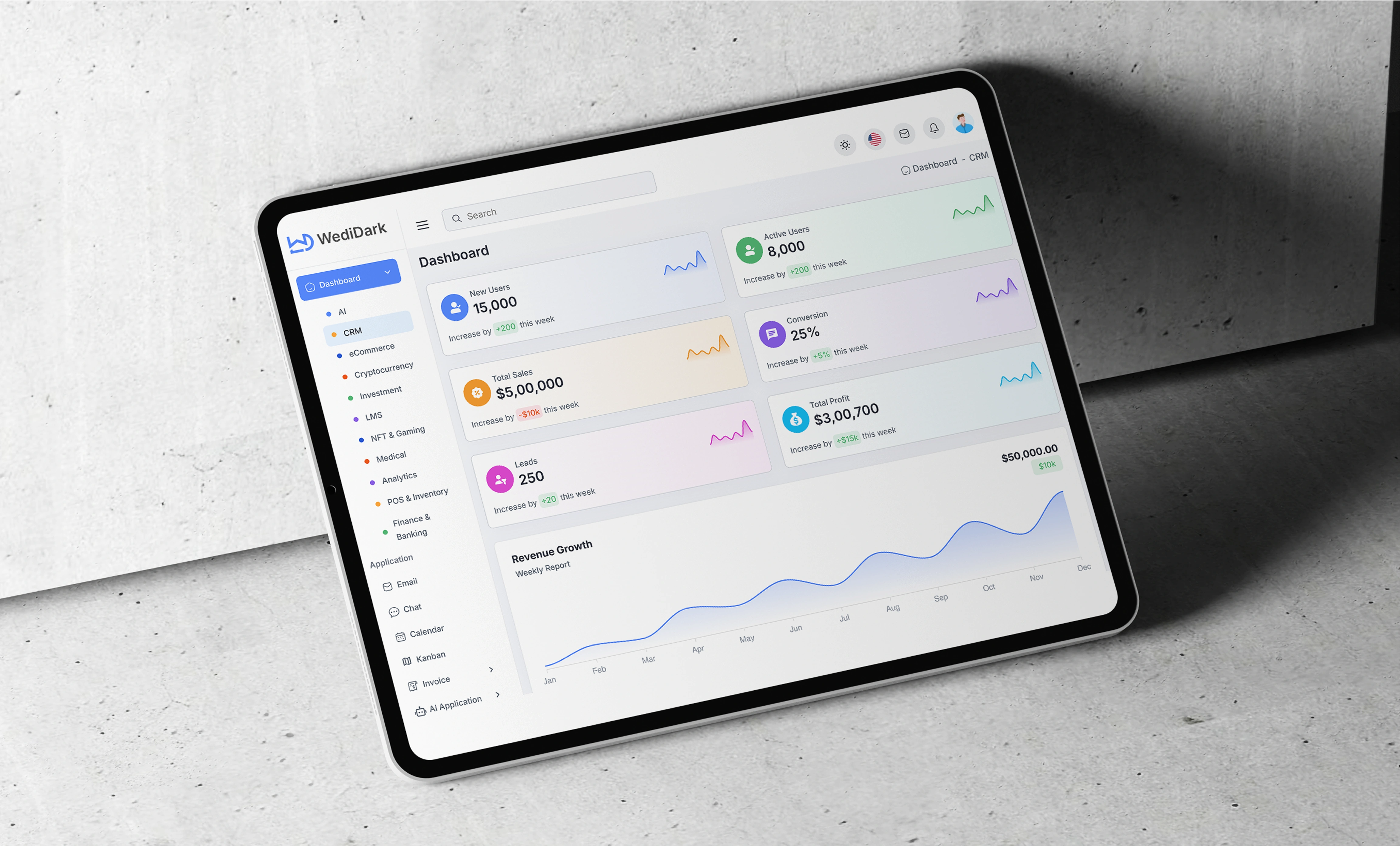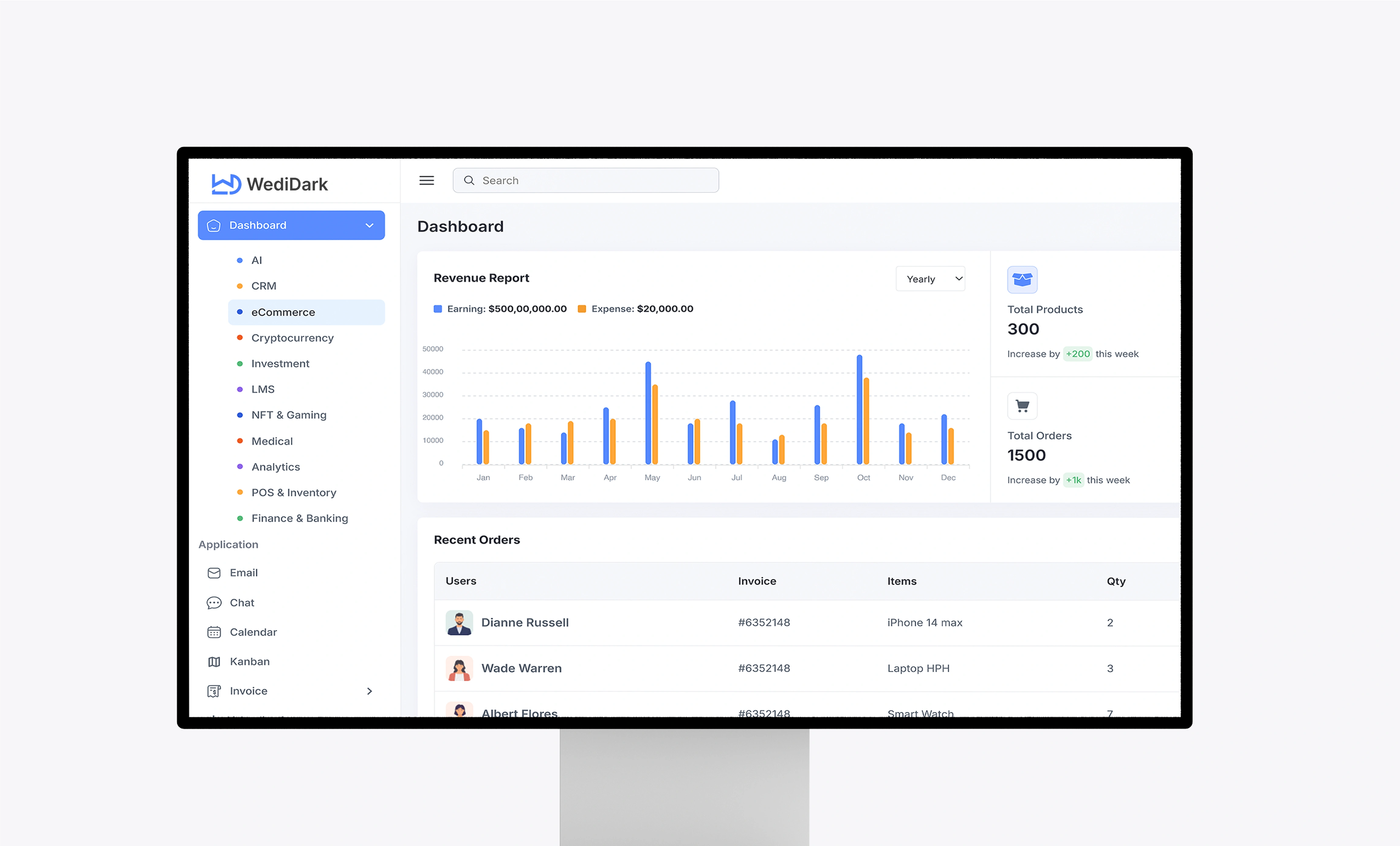 WediDark (WowDashboard) is a concept design for a business analytics dashboard, created to demonstrate how data-heavy platforms can stay modern, structured, and frictionless.