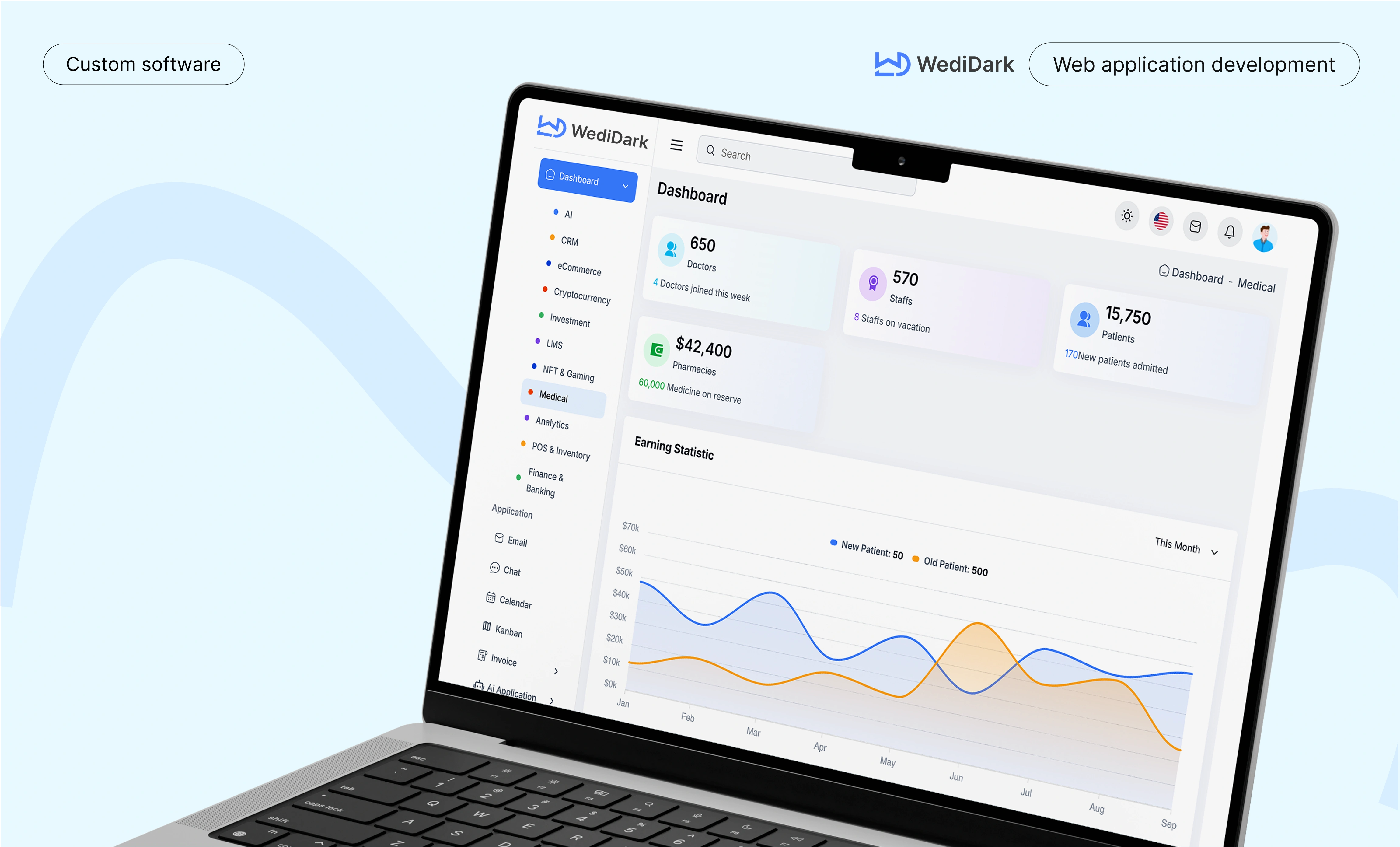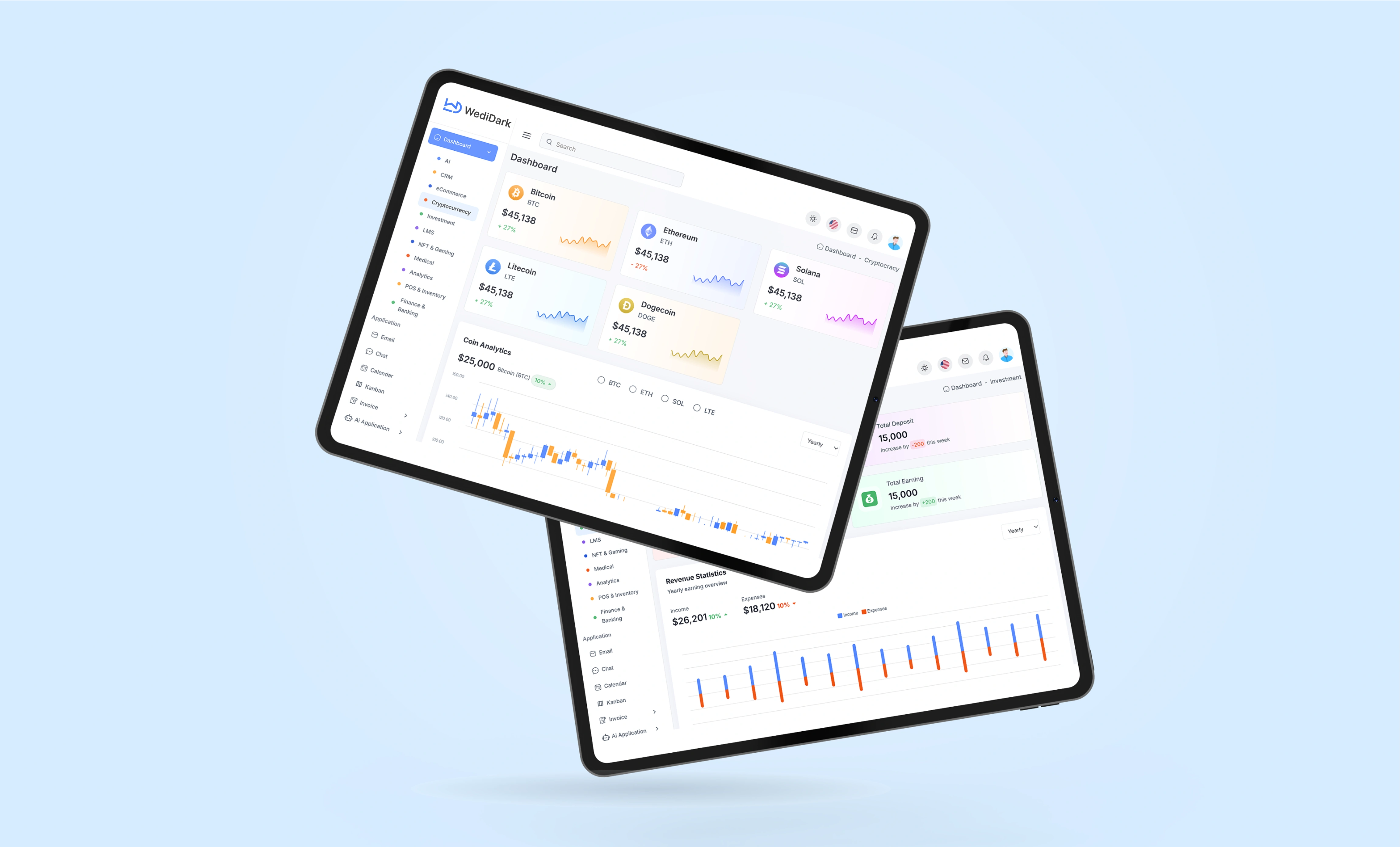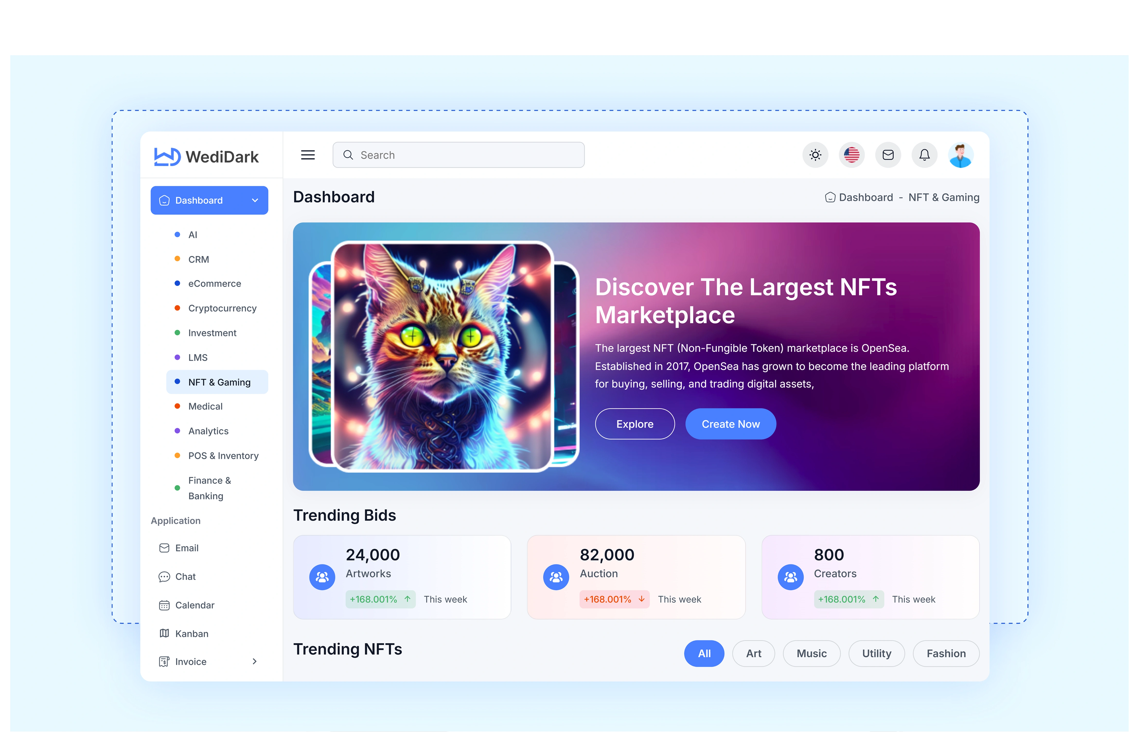 WediDark (WowDashboard) is a concept design for a business analytics dashboard, created to demonstrate how data-heavy platforms can stay modern, structured, and frictionless.