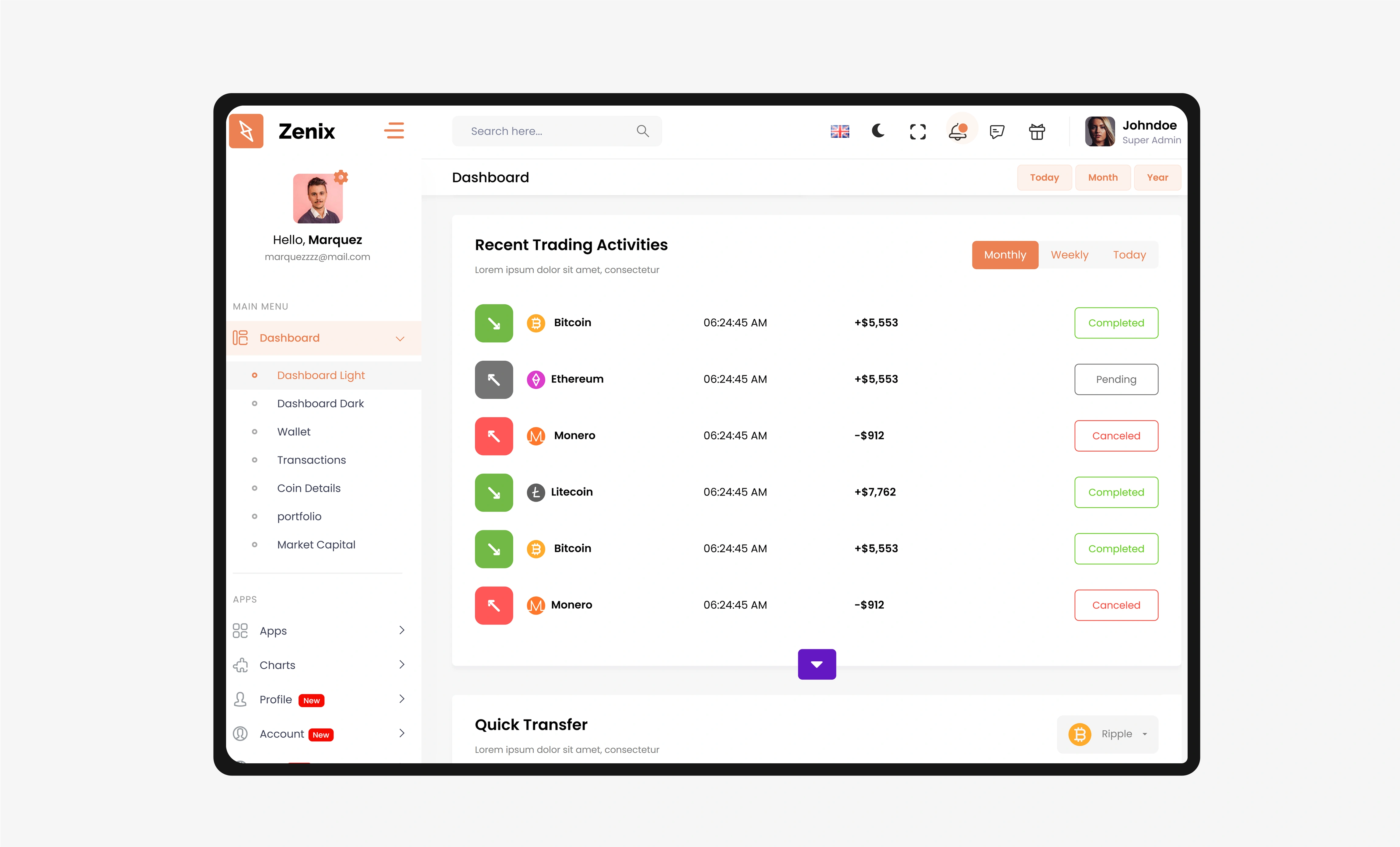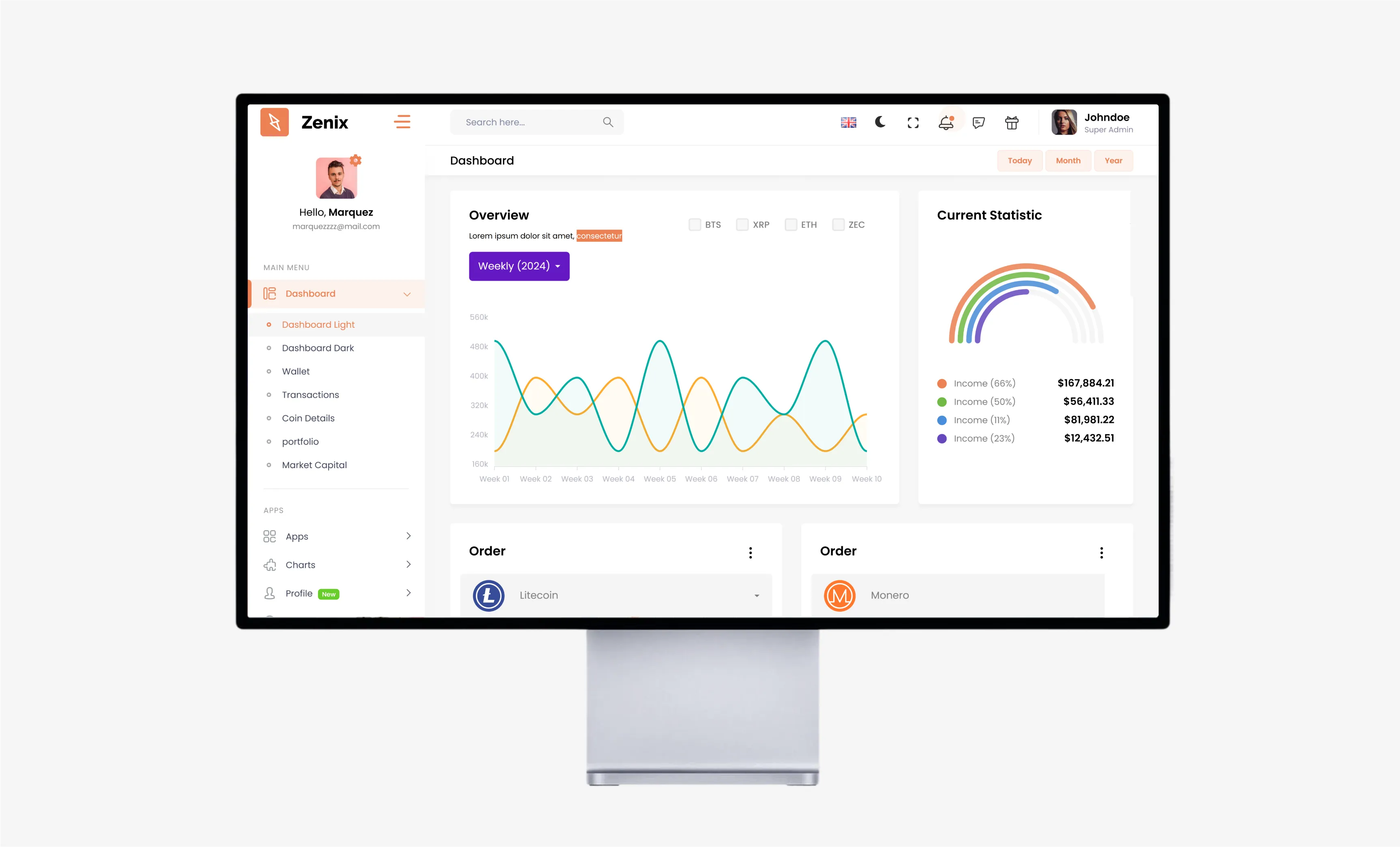 Zenix is a concept dashboard built for the fast-moving world of crypto trading and analytics, designed to present complex data without overwhelming users.